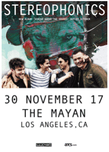 Lastly we have a pair of tickets to see the Stereophonics on November 30th at The Mayan – again email us at britsinla@gmail.com to put your name in the hat – we will announce the winner on Tuesday 28th.