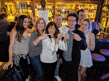 Congratulations to Team “Dark & Stormy Daniels Night” who swept all before them at Tuesday’s Quiz at the Cat & Fiddle in Hollywood. (l to r) Alice Le Sanford, Lorraine Wilkinson, Marina Pagnucci, Rob Pait, Peter Granger-Taylor, Quizmaster Sandro Monetti & Claudia Leigh-Dibbs.
