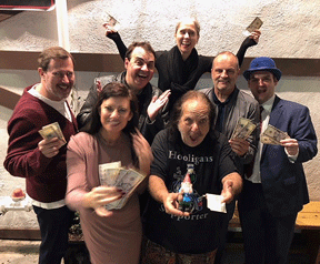 It was the most packed the Cat and Fiddle has been for a Brits in LA event since the Royal Wedding with quizmaster Sandro Monetti drawing a huge crowd for his birthday quiz. But it was Ron’s team, Mamarazzi’s One Shot, pictured here with Sandro, who won the night, the $75 prize and the garden gnome trophy.