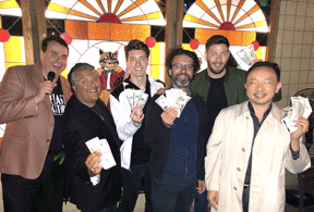 Pictured here with their winnings from the latest Brits in LA Pub Quiz are victors The Last Quiz Team on Earth.