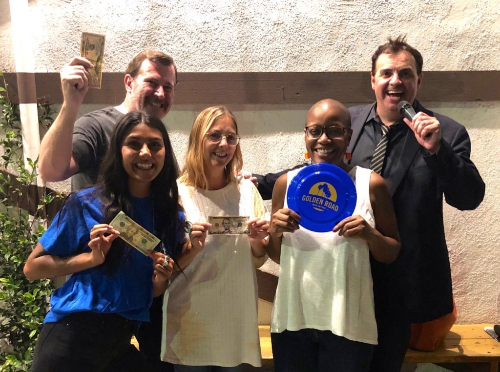 Brighton Seagulls soared to victory at the latest Brits in LA Pub Quiz outpointing all other teams at the Cat and Fiddle to win $75 cash and other prizes from sponsor Golden Road Brewery (@goldonroadbrew).Also winning big were Holly’s Hotshots (see second picture) who won a free round of drinks for their whole team from Golden Road by getting the highest score in the general knowledge round.But that wasn’t the end of the prizes as Johanna Besterman won two tickets to see hilarious show The Play That Goes Wrong at the Ahmanson Theatre, courtesy of CTG.Join the trivia fun at the Cat next Tuesday, when Sandro Monetti will again be your host, and maybe you too could be among the winners. (Pictures by Frank Sanford)